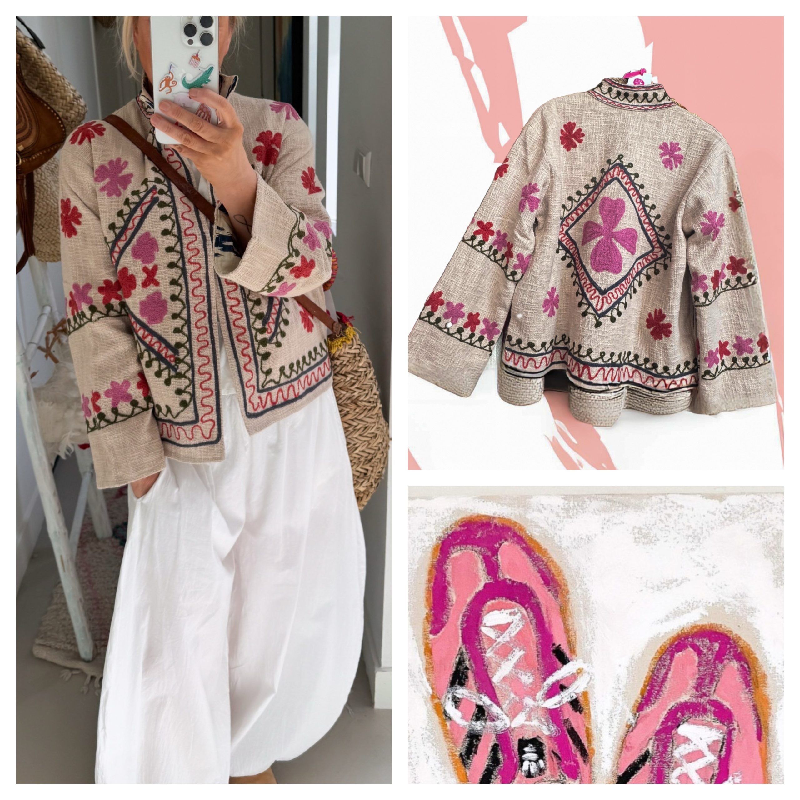 SOLD: Zola Lucky Jasje Heerlijk jasje met prachtige borduursels. hij is gevoerd en heeft zakken, Het is 1 maat, maar past tot maat XL Categorie: House of Zola
