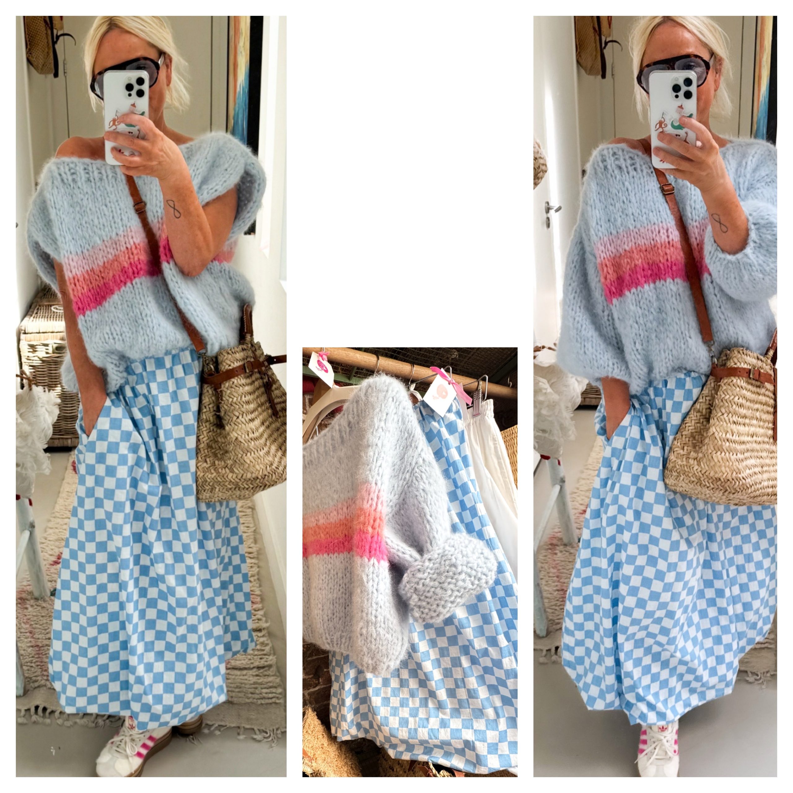 Gave BallonSkirt Maxi in blauw/wit blokje.