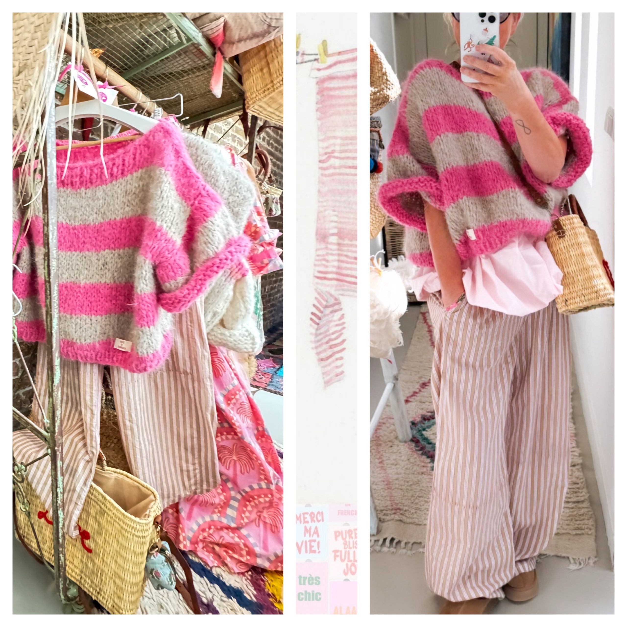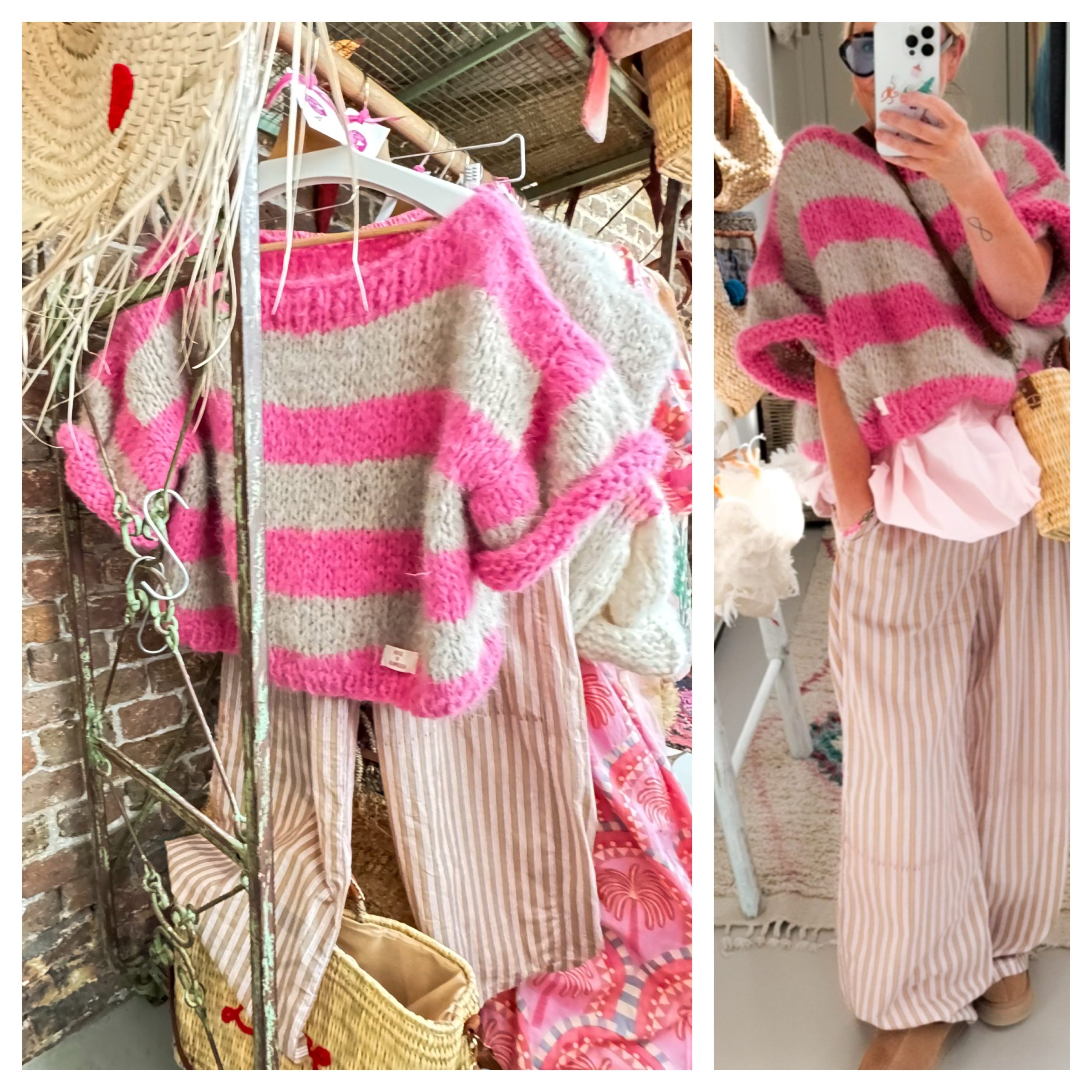 ZolaStripeSweater, handmade Alpaca trui in de kleuren Pink en Beige.