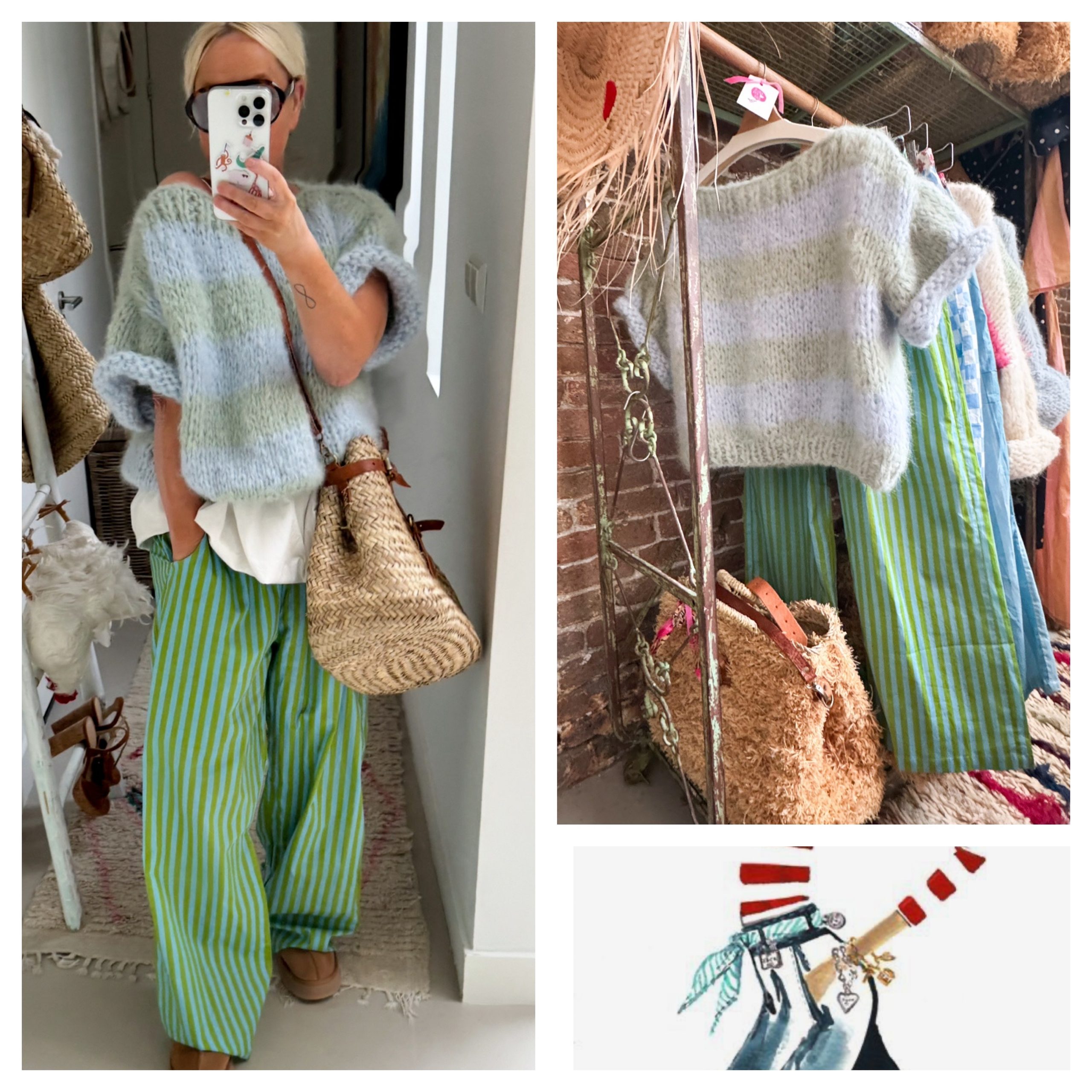 ZolaStripeSweater, handmade Alpaca trui in super mooie kleuren pistache groen en hemelsblauw.