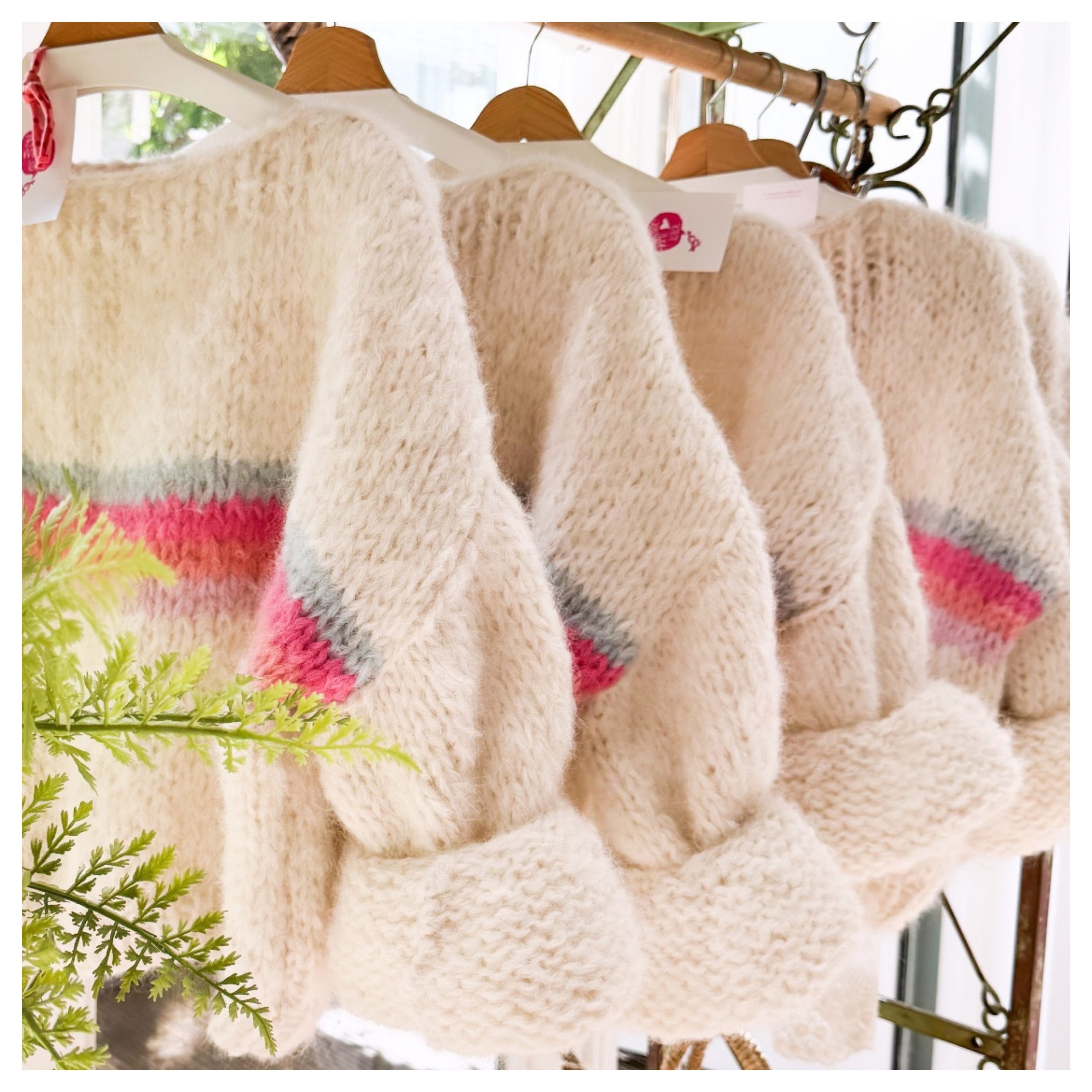 Super zachte Ivoor OffShoulder sweater gemaakt van zachte Alpaca/Merino wol met de bekende Sunshine.