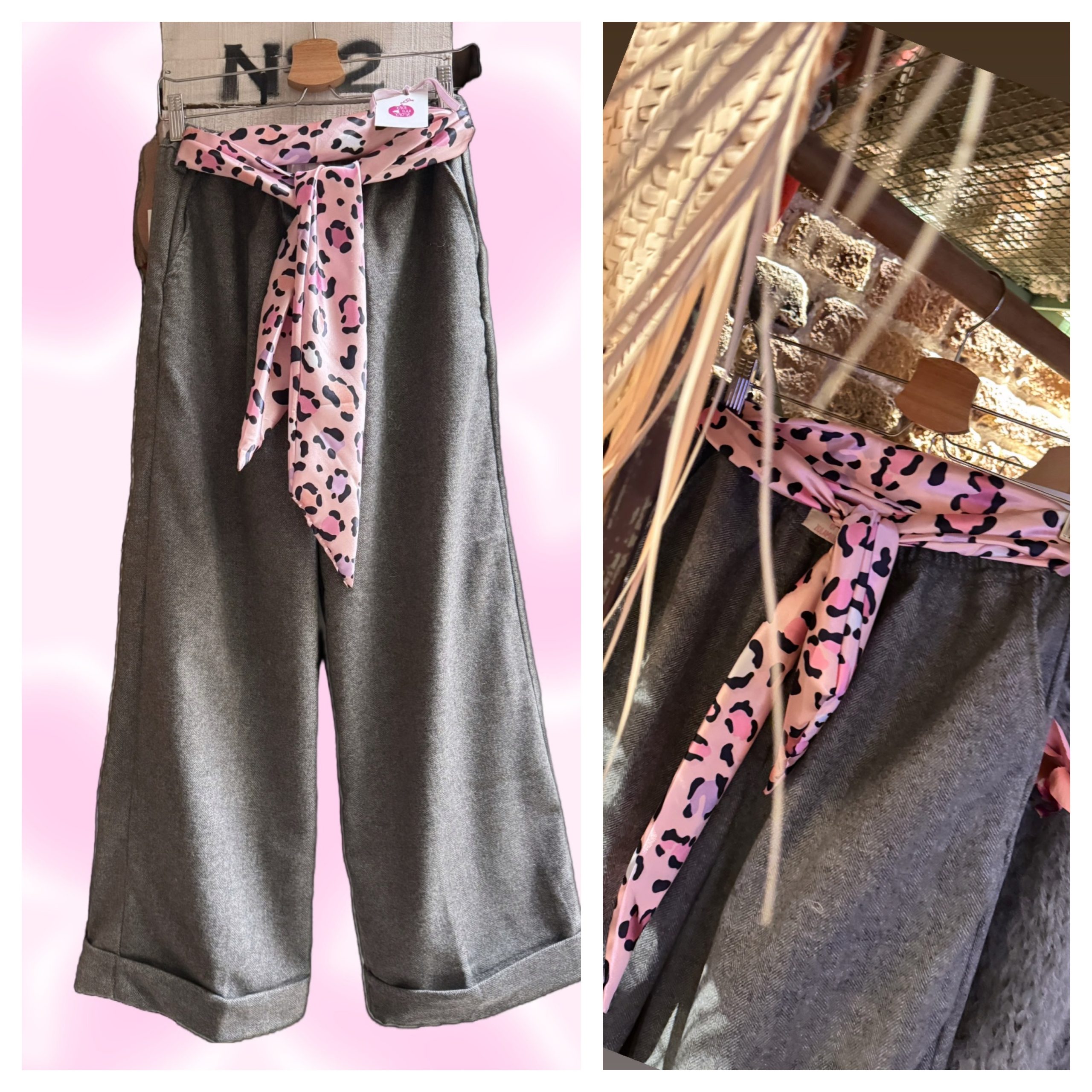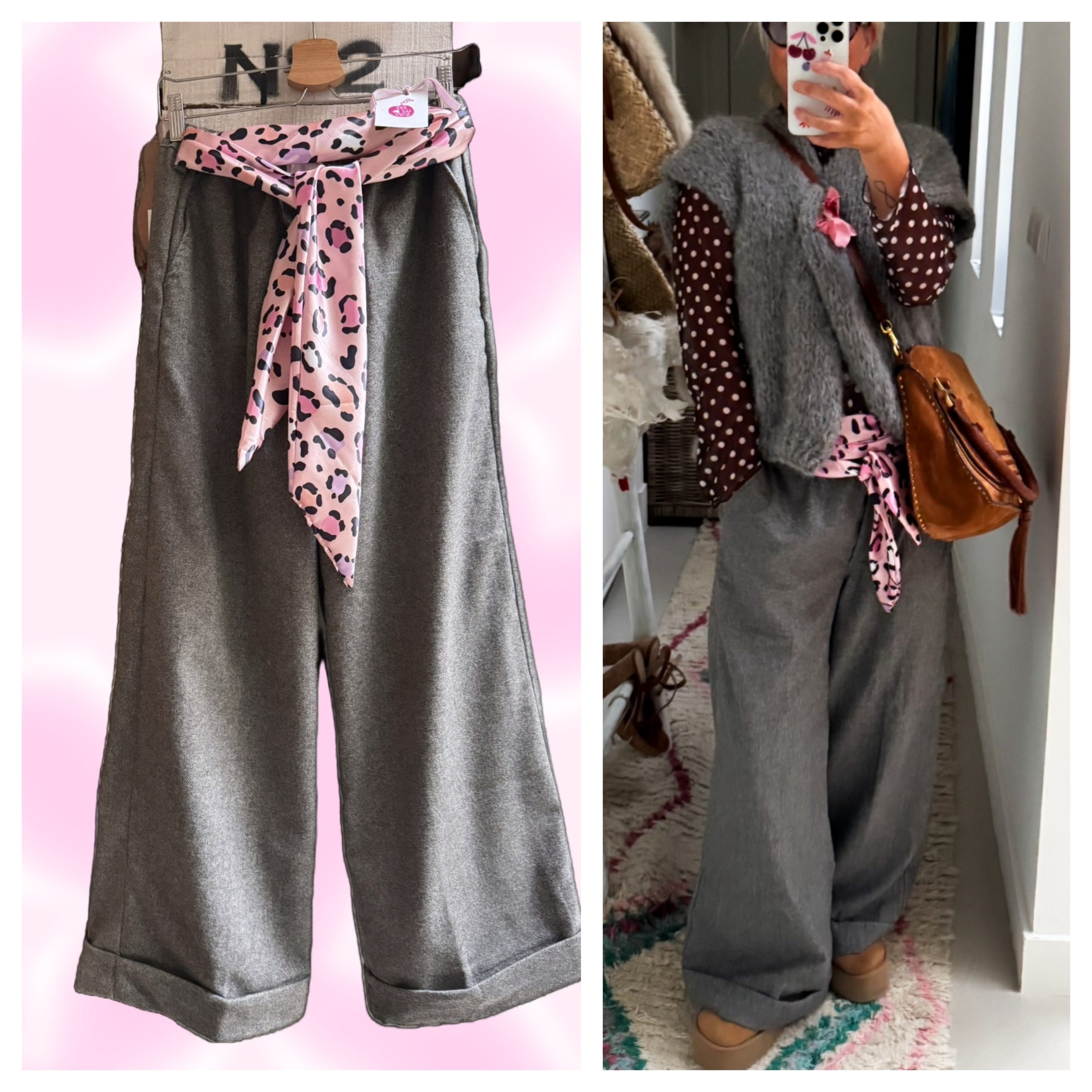 Nieuw: Prachtig gevoerde Tweedbroek in gave kleur grijs. De broek heeft zakken en elastiek in de taille met een omslag, a la Marlene Dietrich.