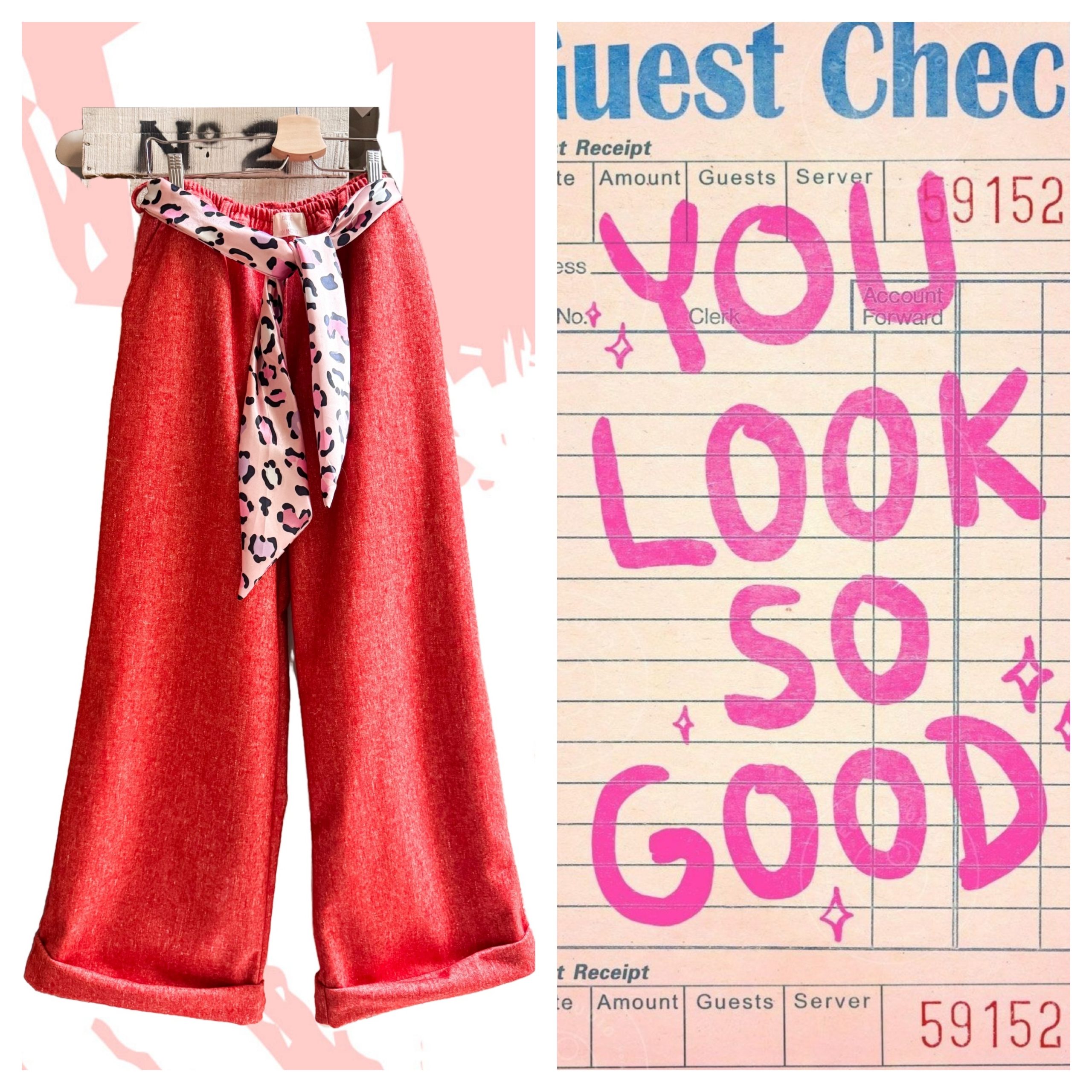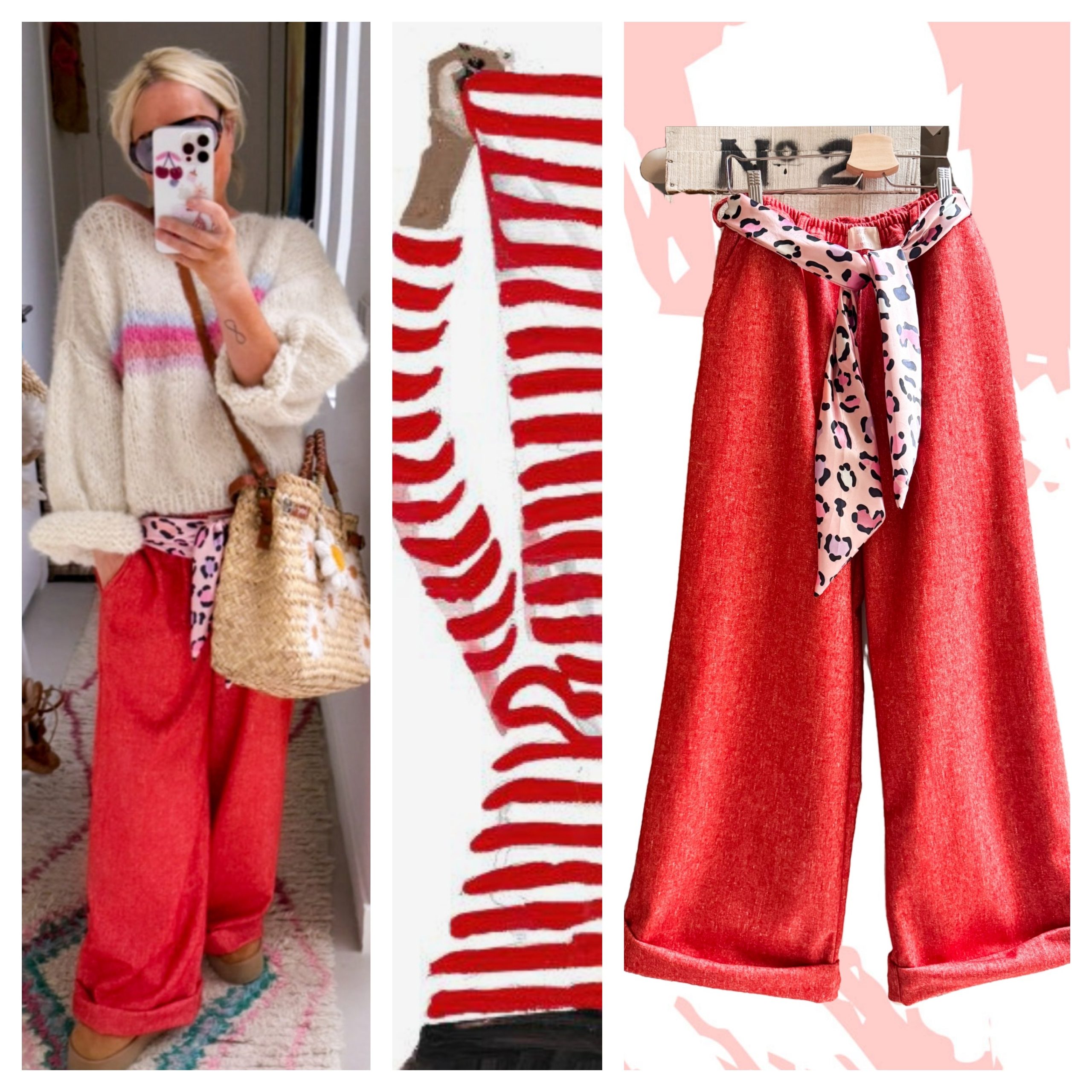 Super mooie broek in Marlene Dietrich stijl in gaaf kleurtje rood.