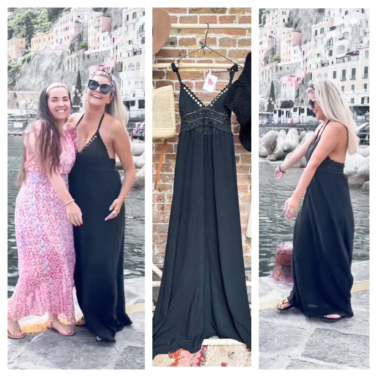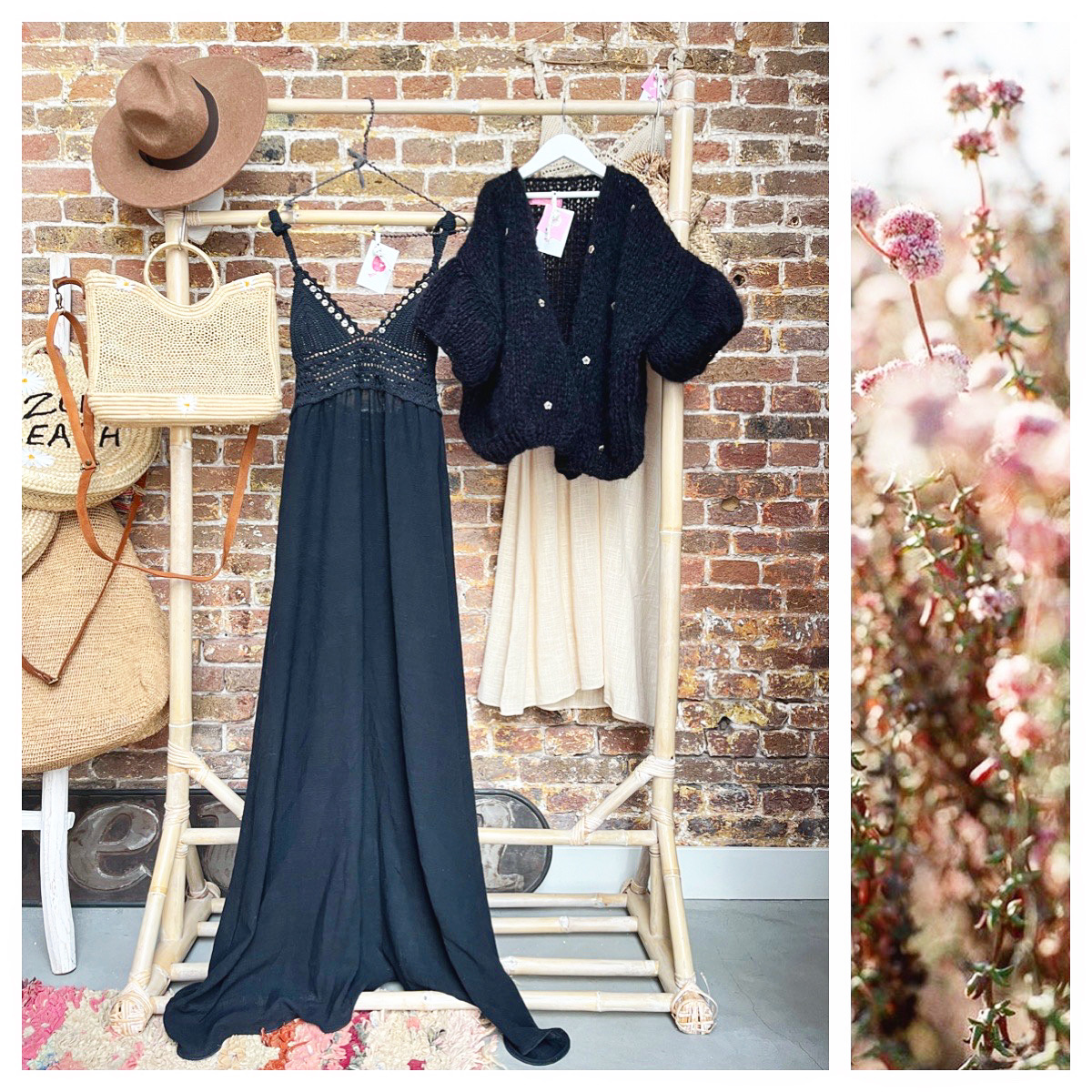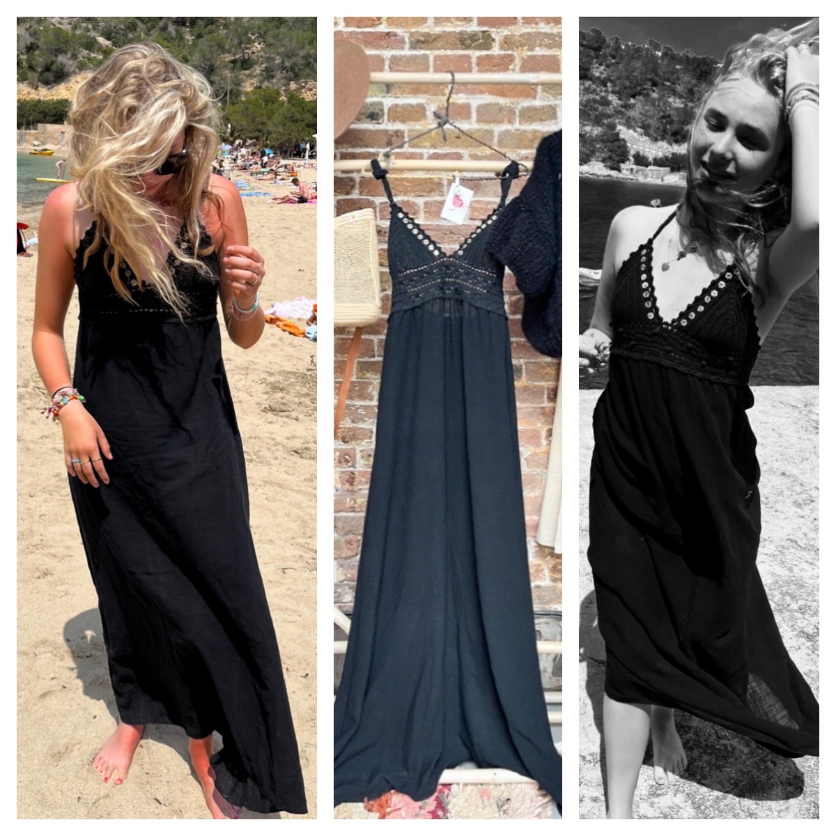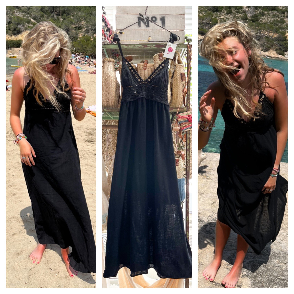 Het zwarte ZolaJurkje is gemaakt van biologisch zwart linnen/katoenen stof.