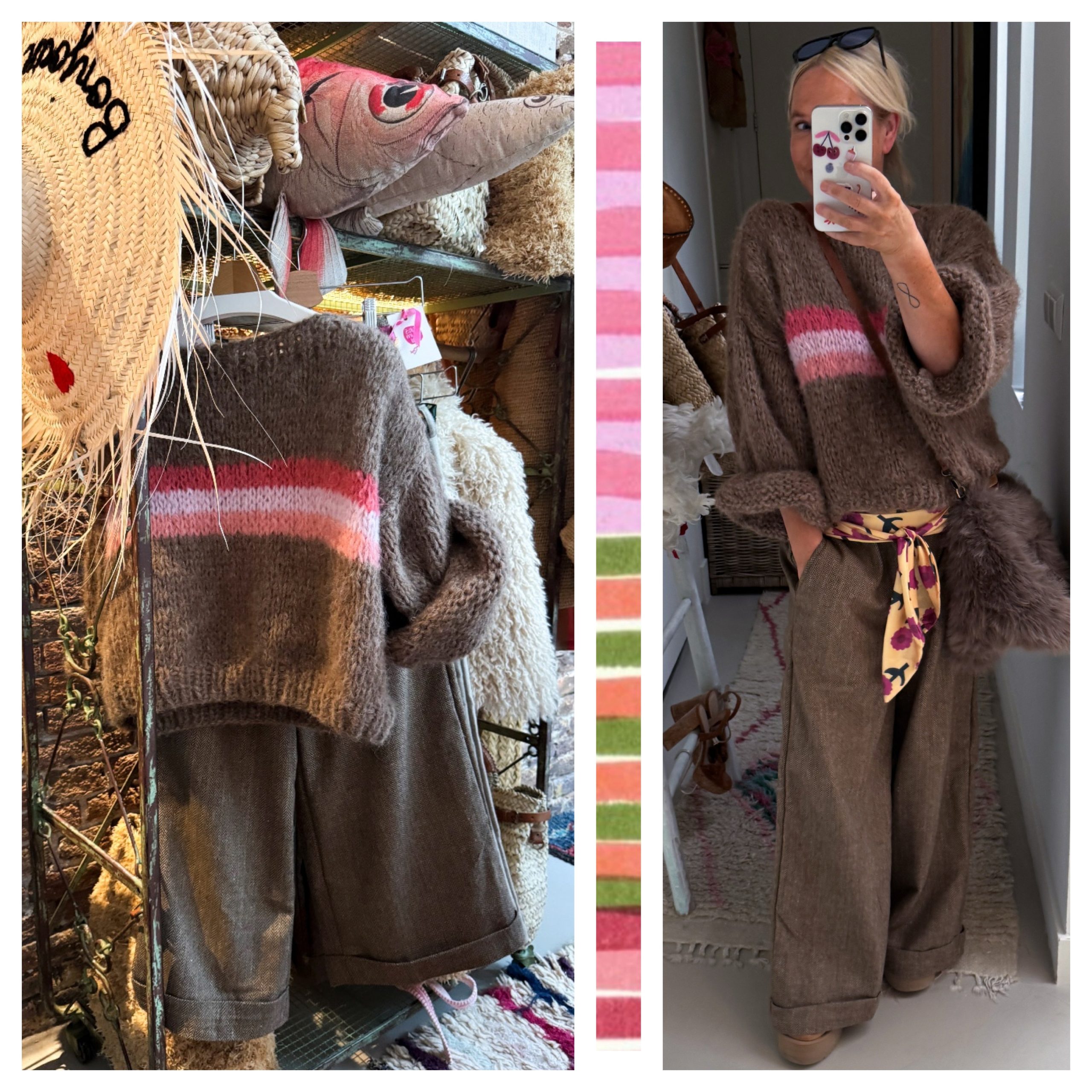Heerlijk truitje in heerlijk kleurtje bruin met de bekende Zolastrepen. Gemaakt van zachte AlpacaWol.