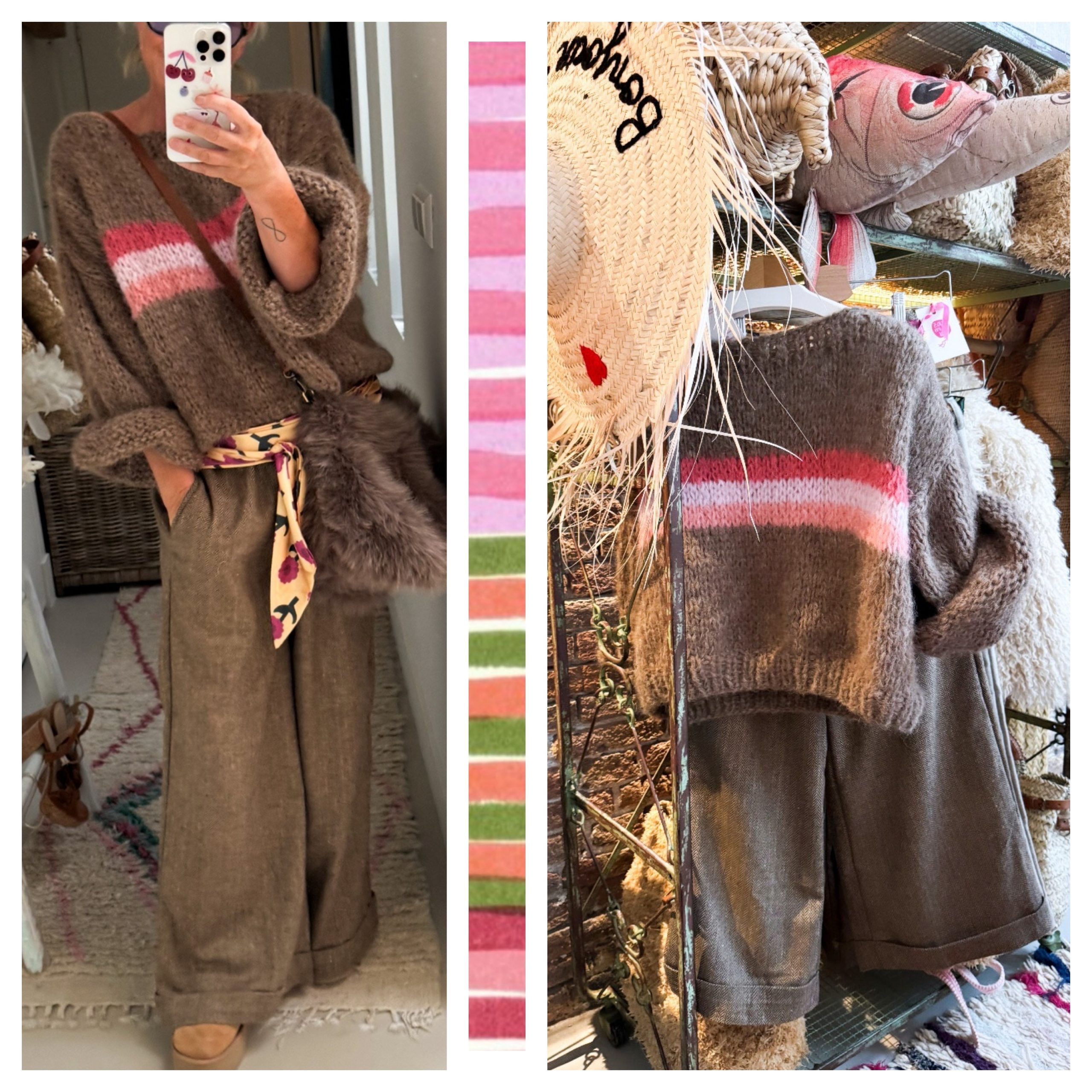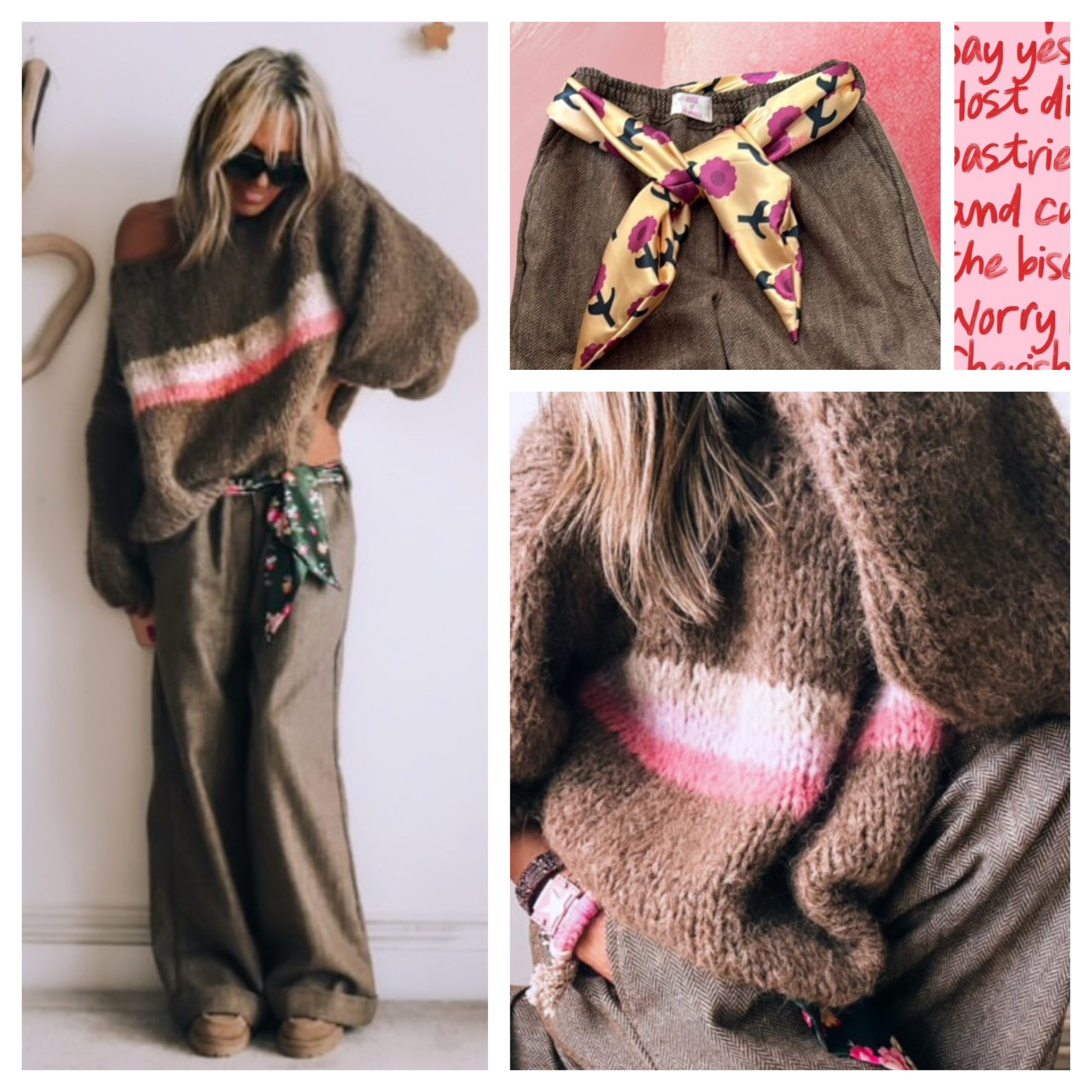 Super mooie gevoerde Tweedbroek in het bruin. Heeft zakken, elastiek in de taille en een omslag, Marlene Dietrich stijl.